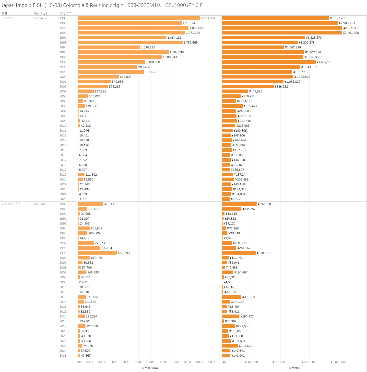 Japan Import FISH (HS-03) Colombia & Reunion origin 2025M10