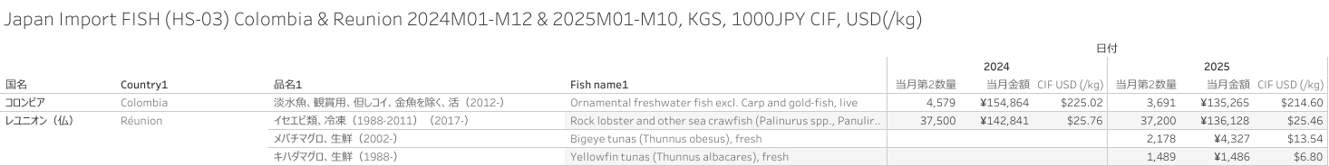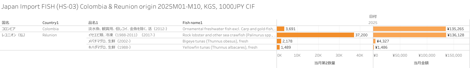 Japan Import FISH (HS-03) Colombia & Reunion origin 2025M10