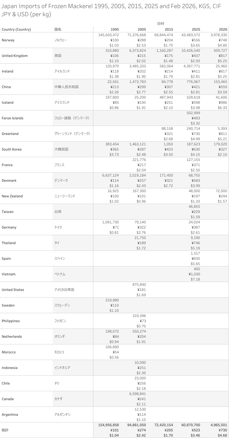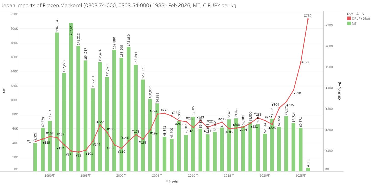 Japan Imports of Frozen Mackerel 1988 - Feb 2026