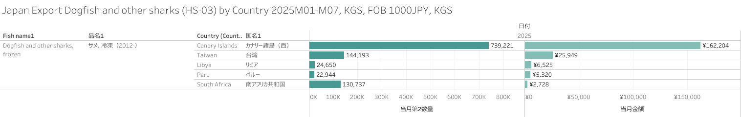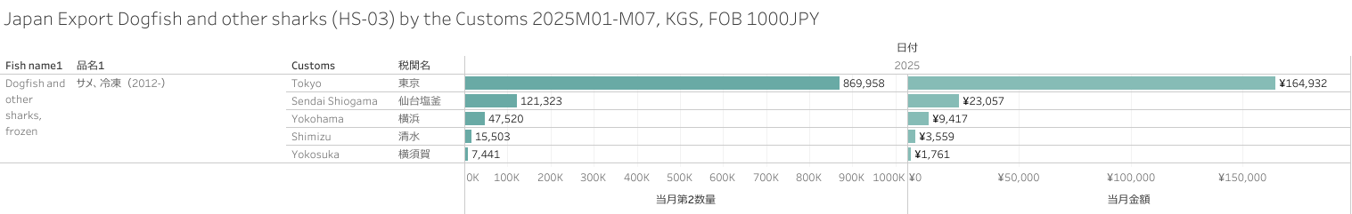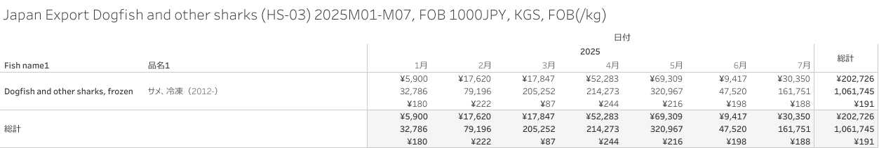 日本 サメ(HS-03)輸出統計 2025年7月まで