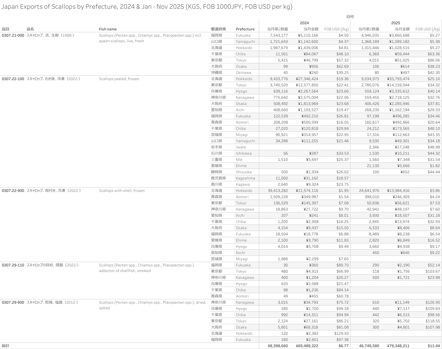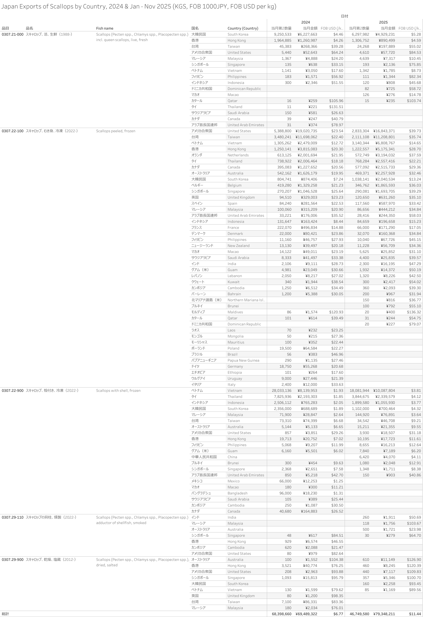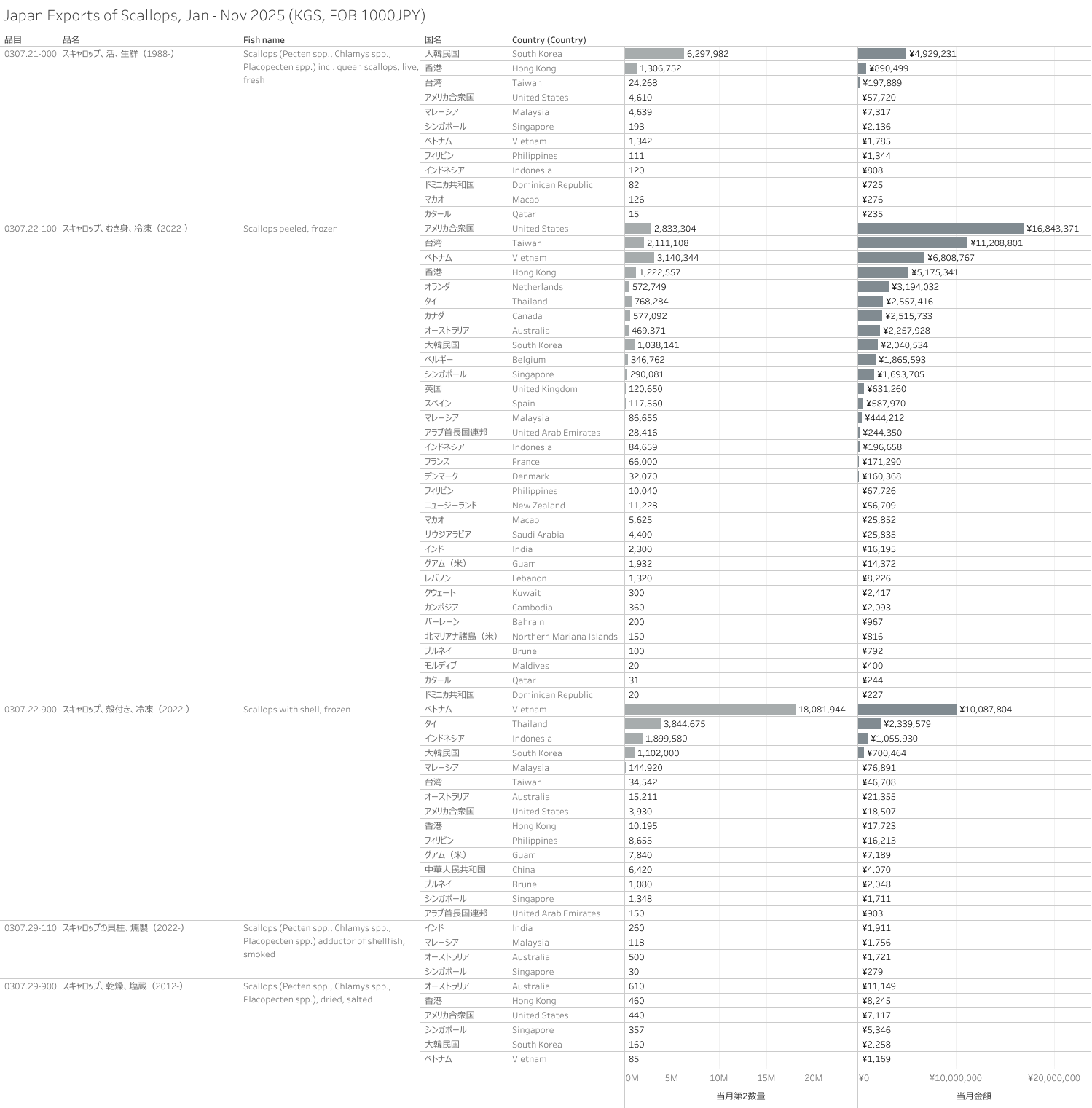 日本 スキャロップ(HS-03)輸出統計 2025年01月-11月