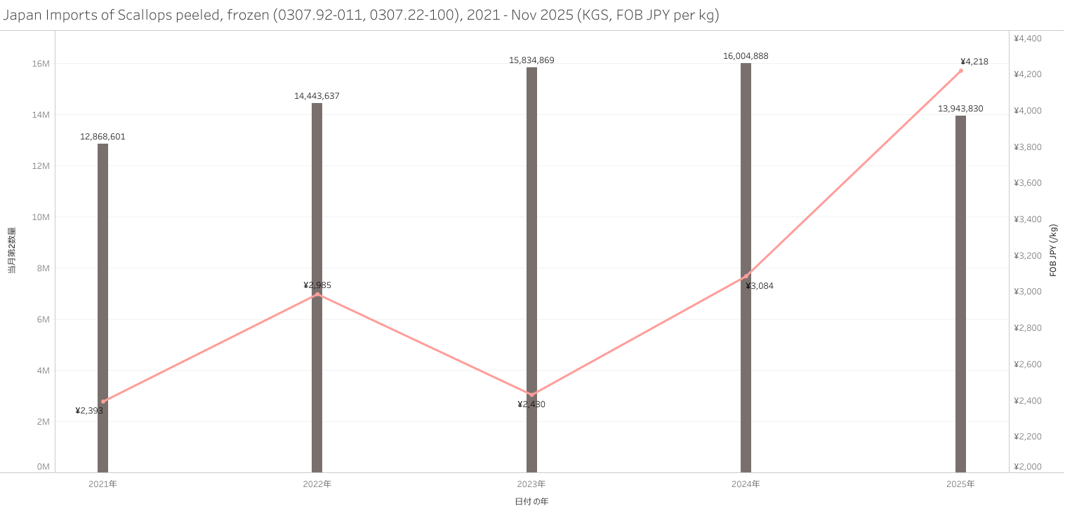 Japan Imports of Scallops (HS-03) Jan - Nov 2025