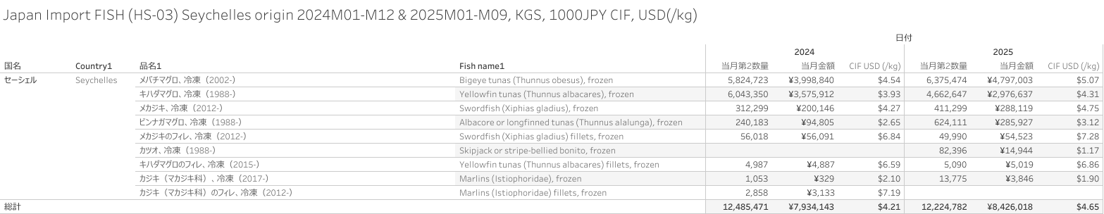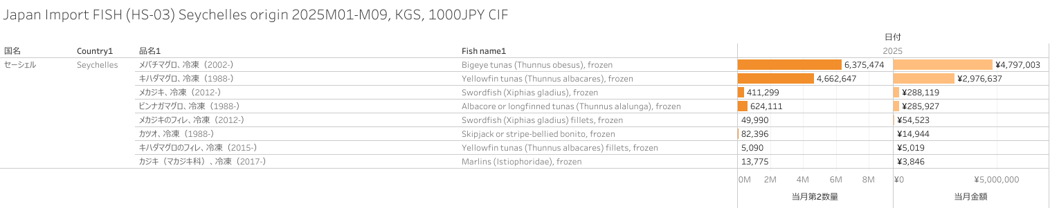 Japan Import FISH (HS-03) Seychelles origin 2025M09