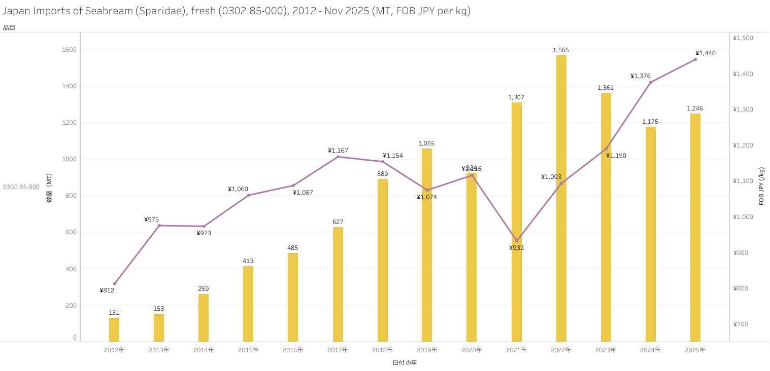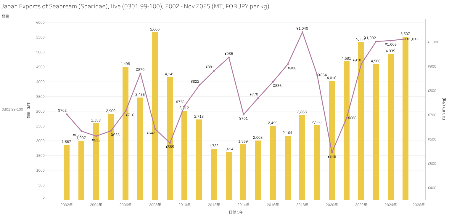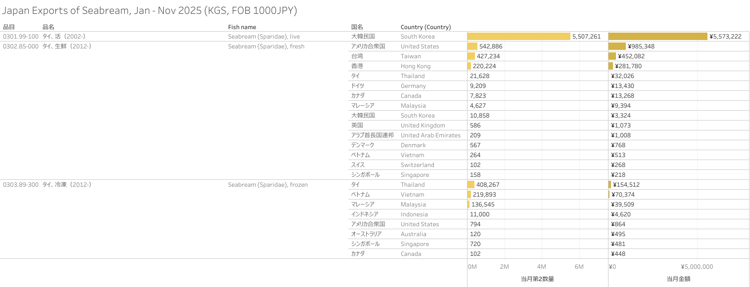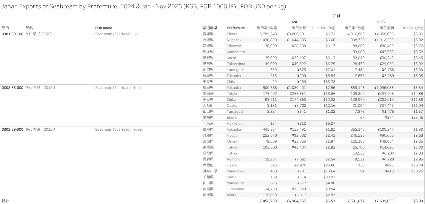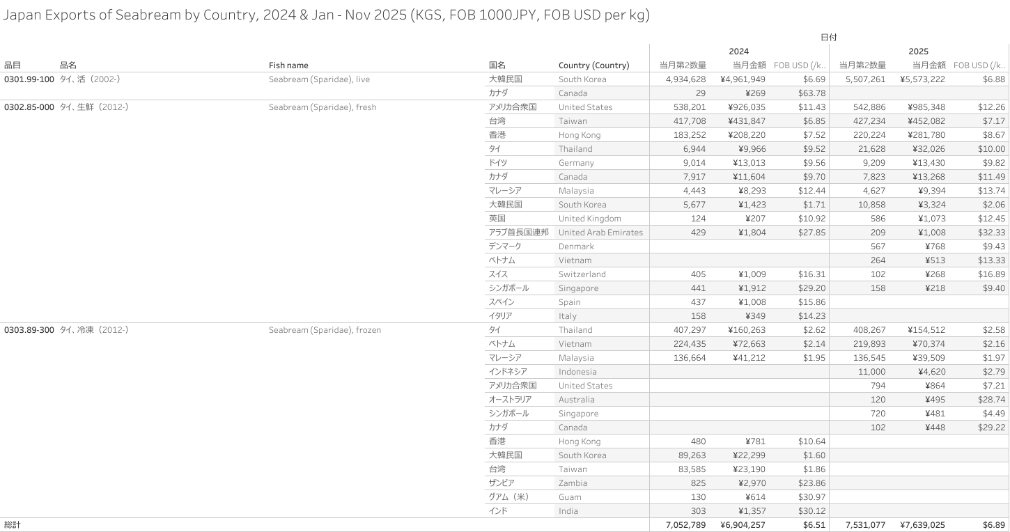 Japan Exports of Seabream (HS-03) Jan - Nov 2025