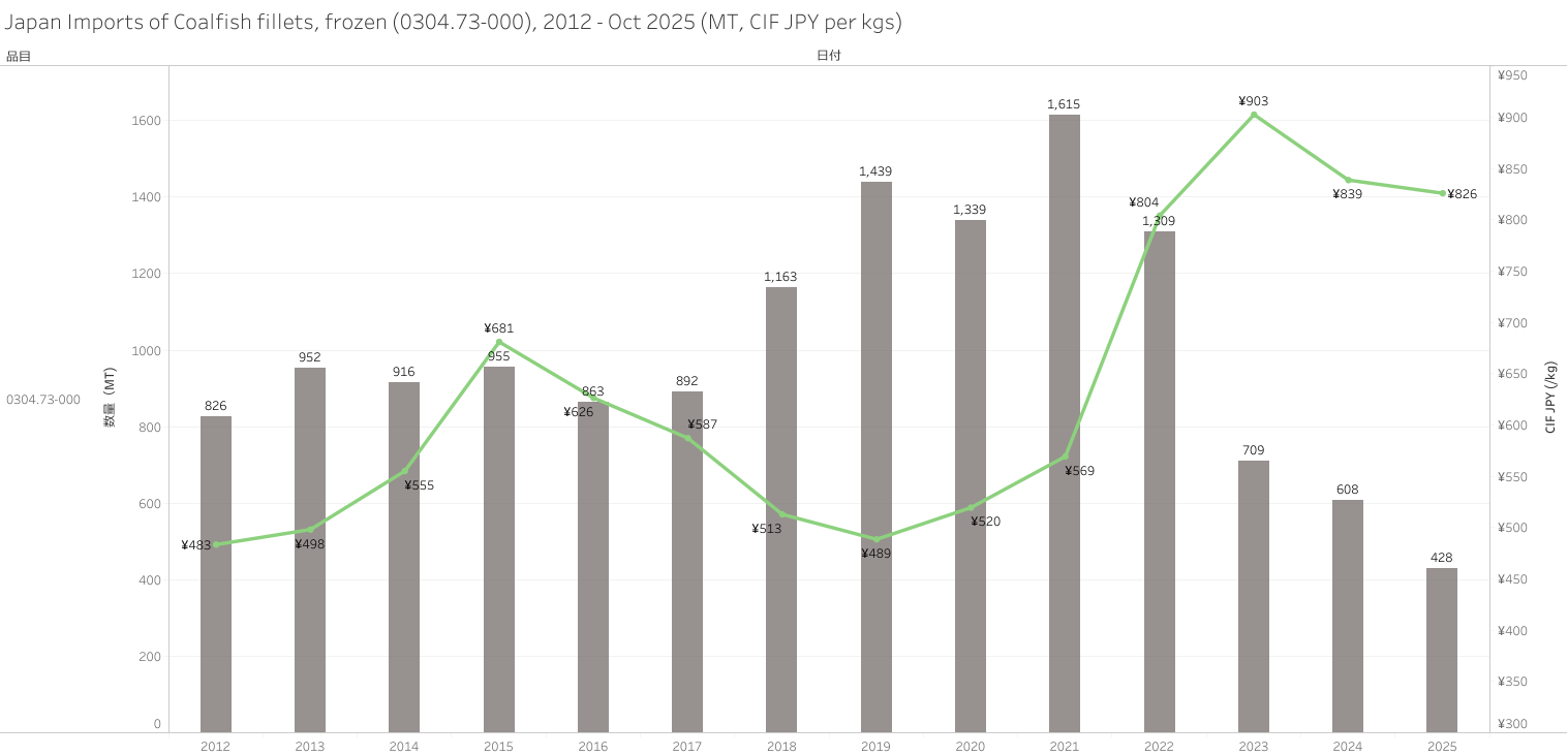 Japan Imports of Tara (Gadidae) (HS-03) Jan 2025 - Oct 2025