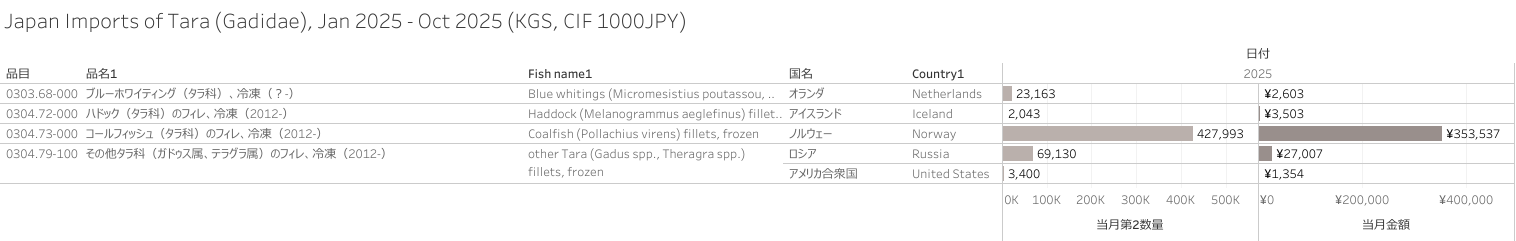 日本 タラ科(HS-03)輸入統計 2025年01月-10月
