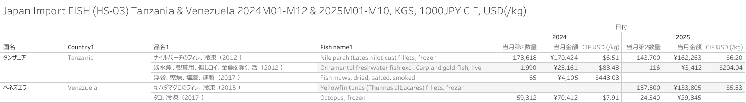 Japan Import FISH (HS-03) Tanzania & Venezuela origin 2025M10