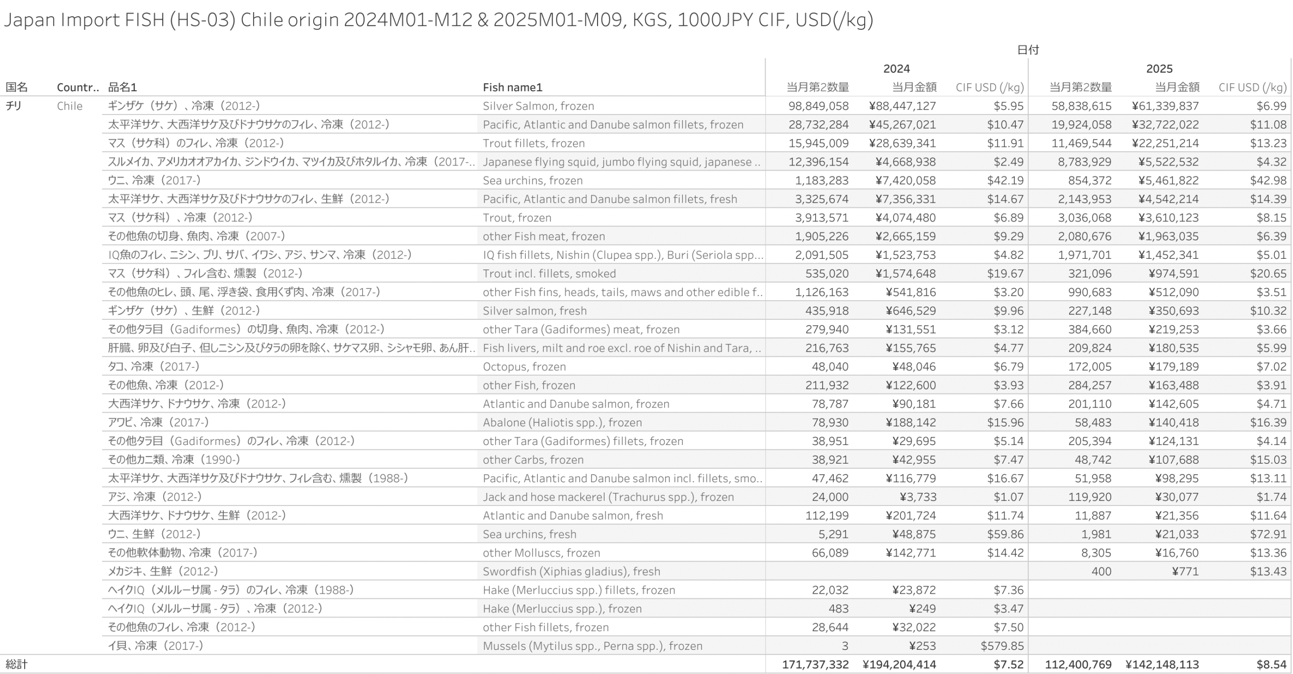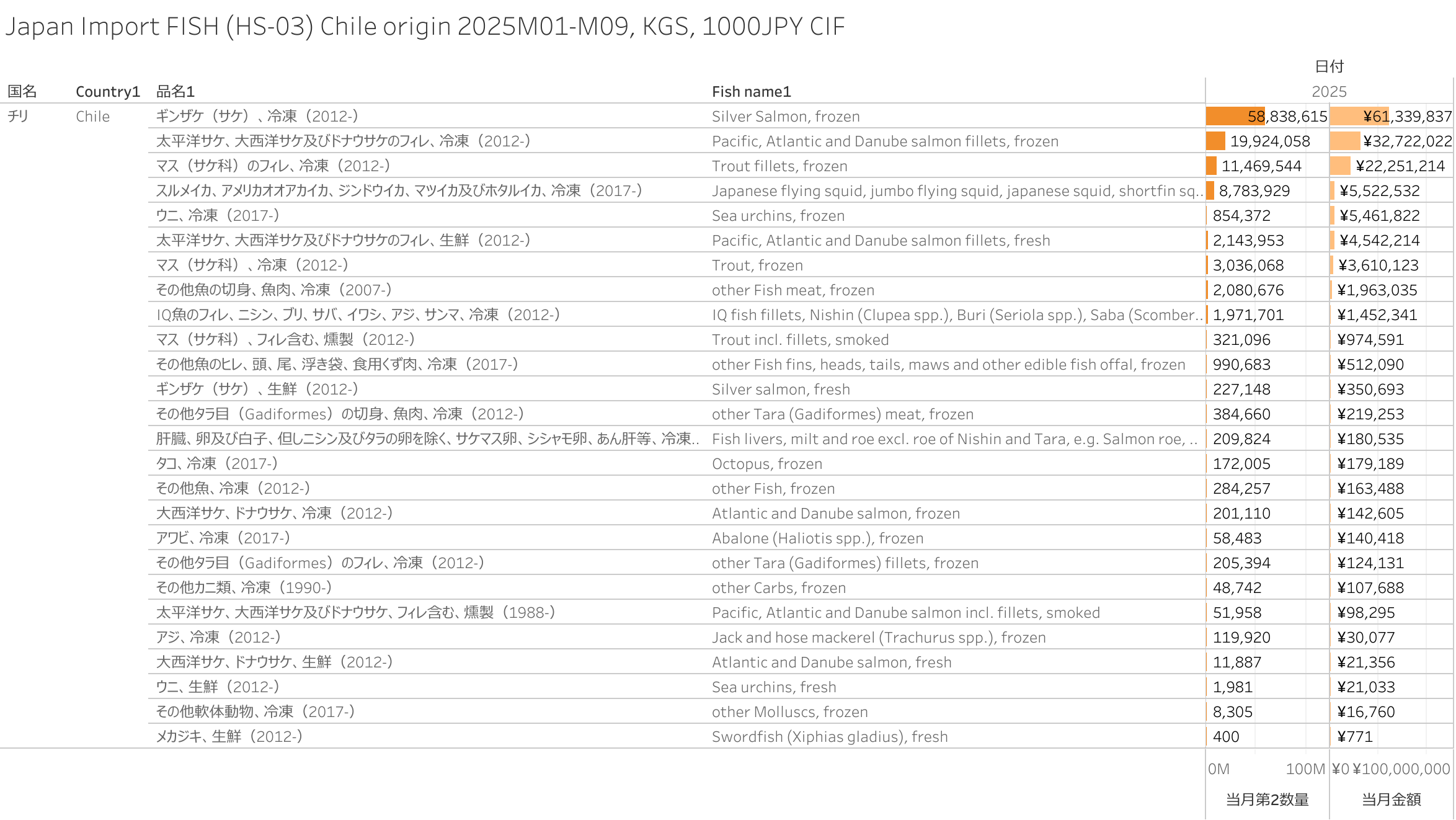 Japan Import FISH (HS-03) Chile origin 2025M09
