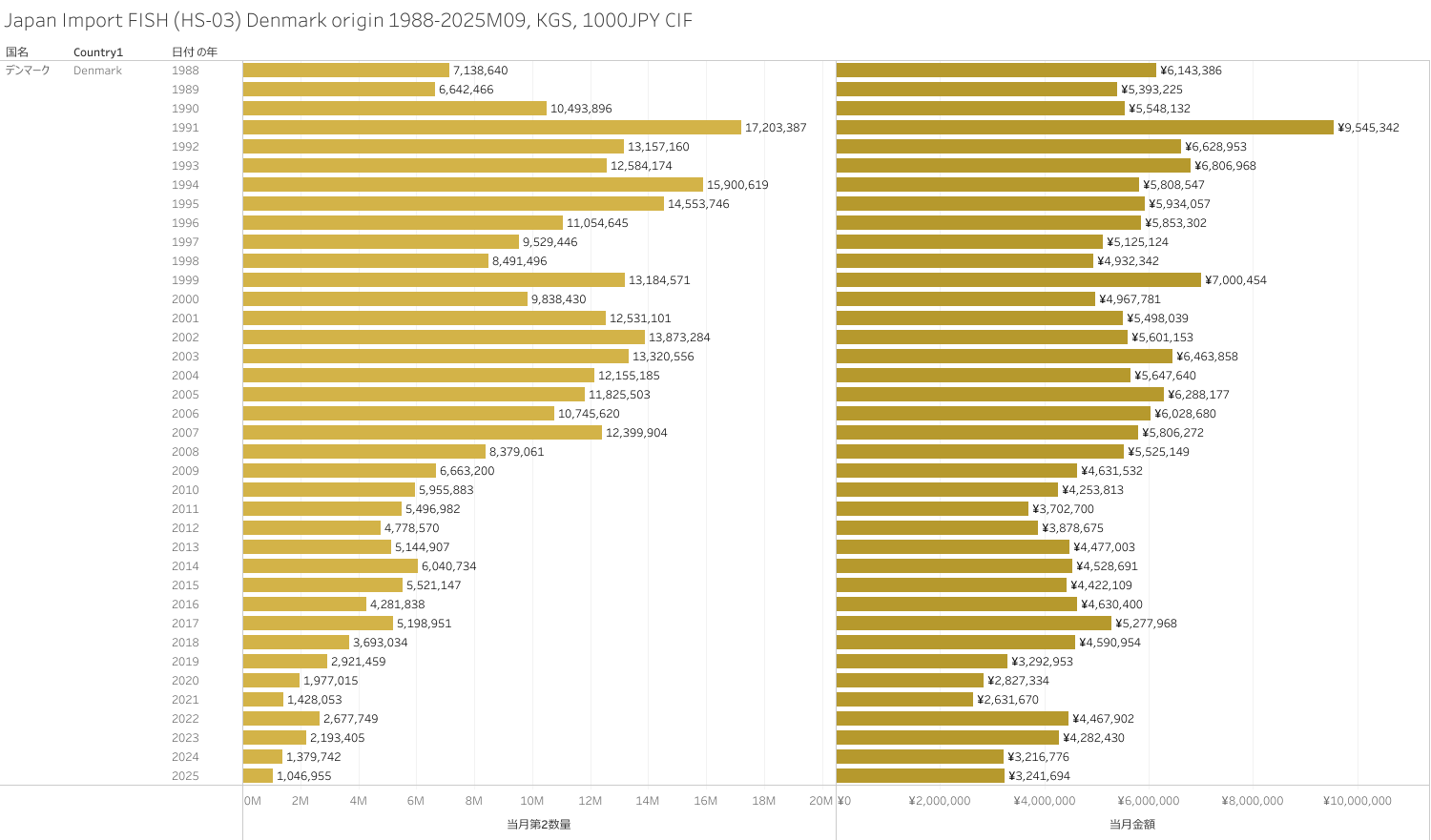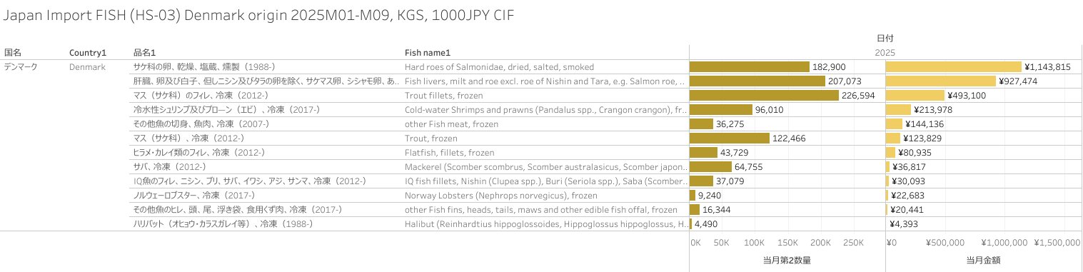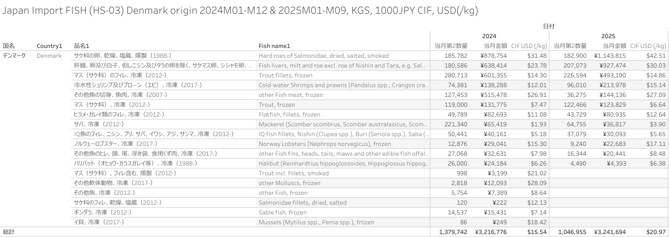 日本 デンマーク産水産物(HS-03)輸入統計 2025年09月まで