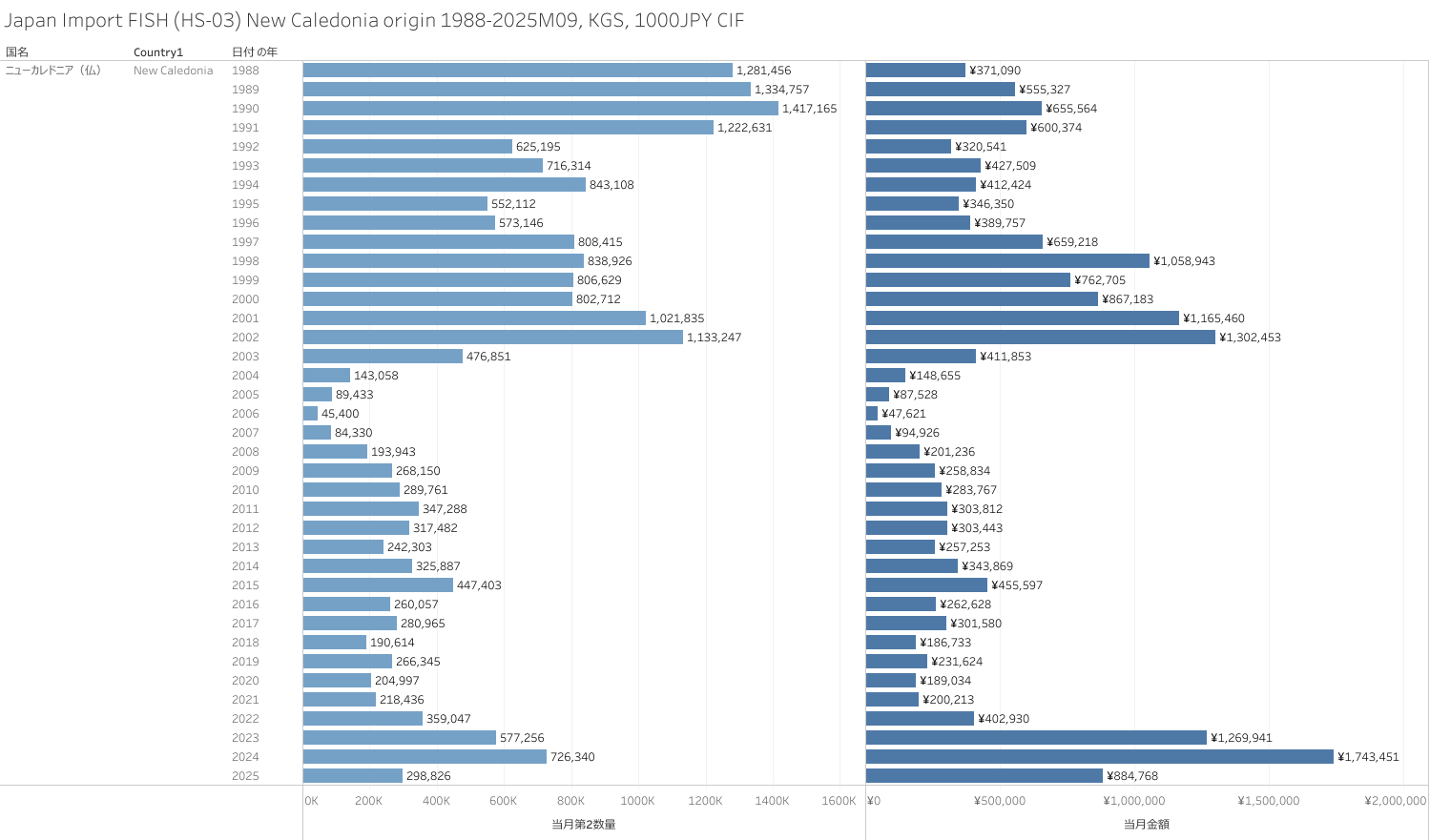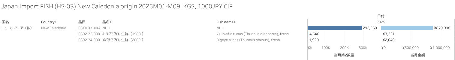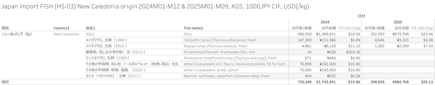 Japan Import FISH (HS-03) New Caledonia origin 2025M09