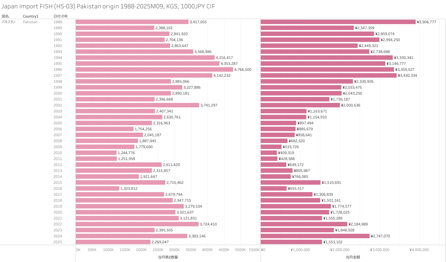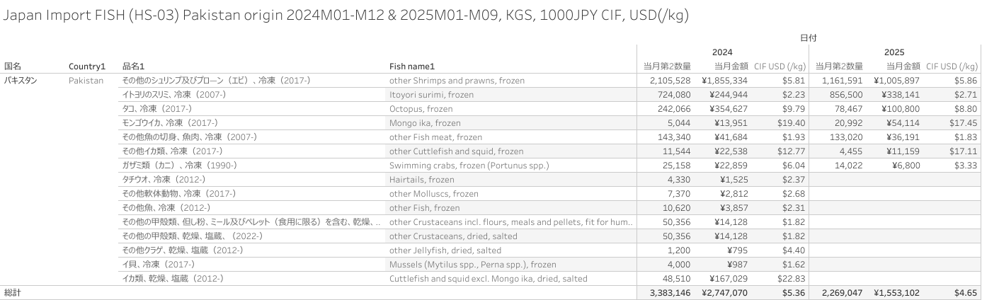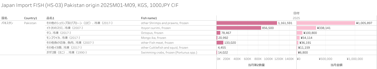 日本 パキスタン産水産物(HS-03)輸入統計 2025年09月まで