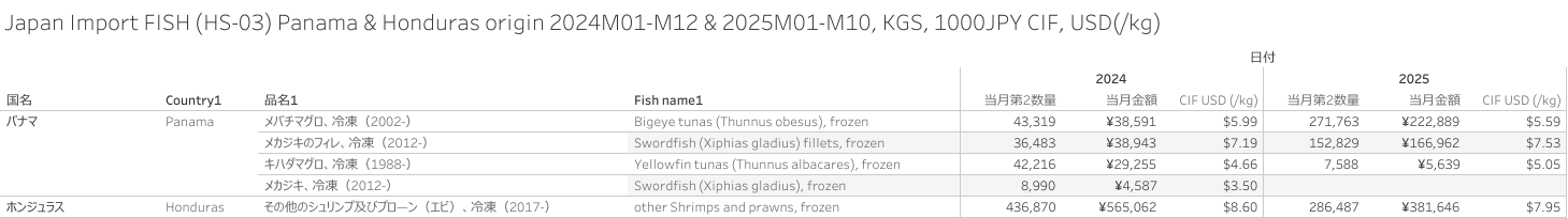Japan Import FISH (HS-03) Panama & Honduras origin 2025M10