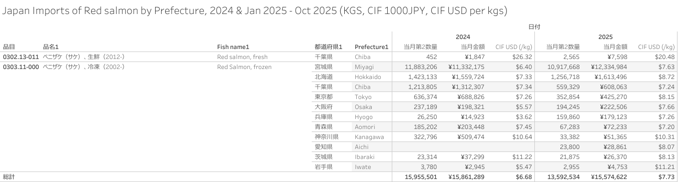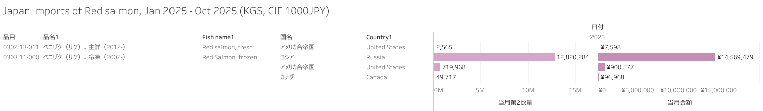 日本 ベニザケ(HS-03)輸入統計 2025年01月-10月