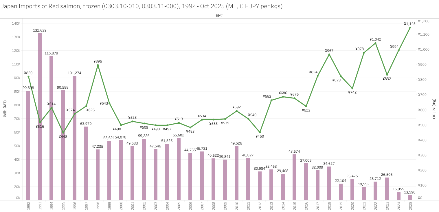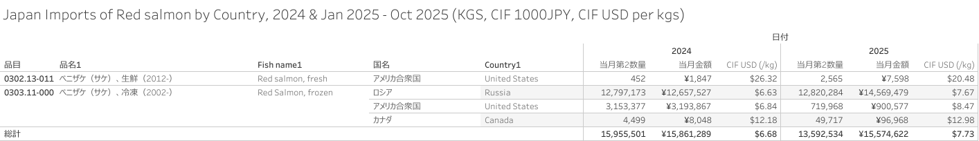 Japan Imports of Red salmon (HS-03) Jan 2025 - Oct 2025