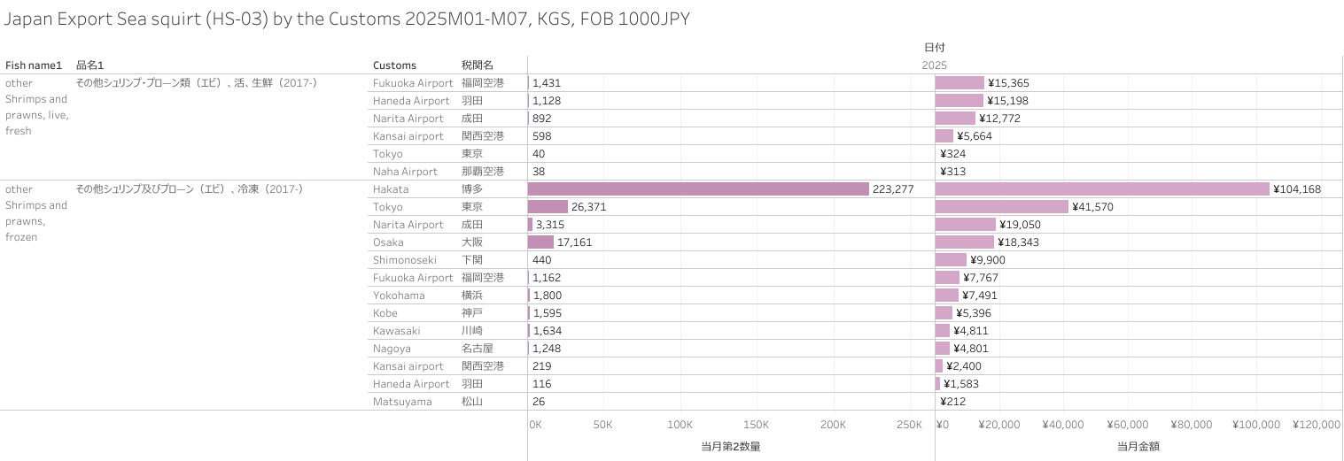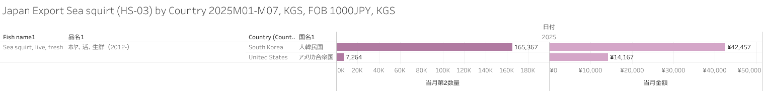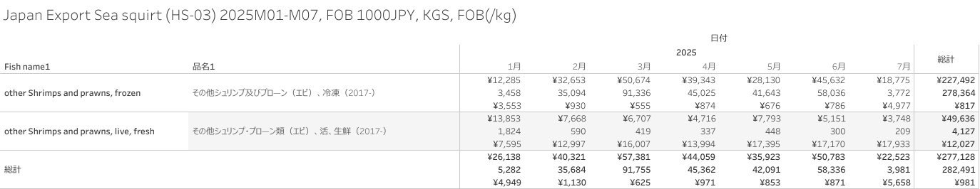 日本 ホヤ(HS-03)輸出統計 2025年7月まで
