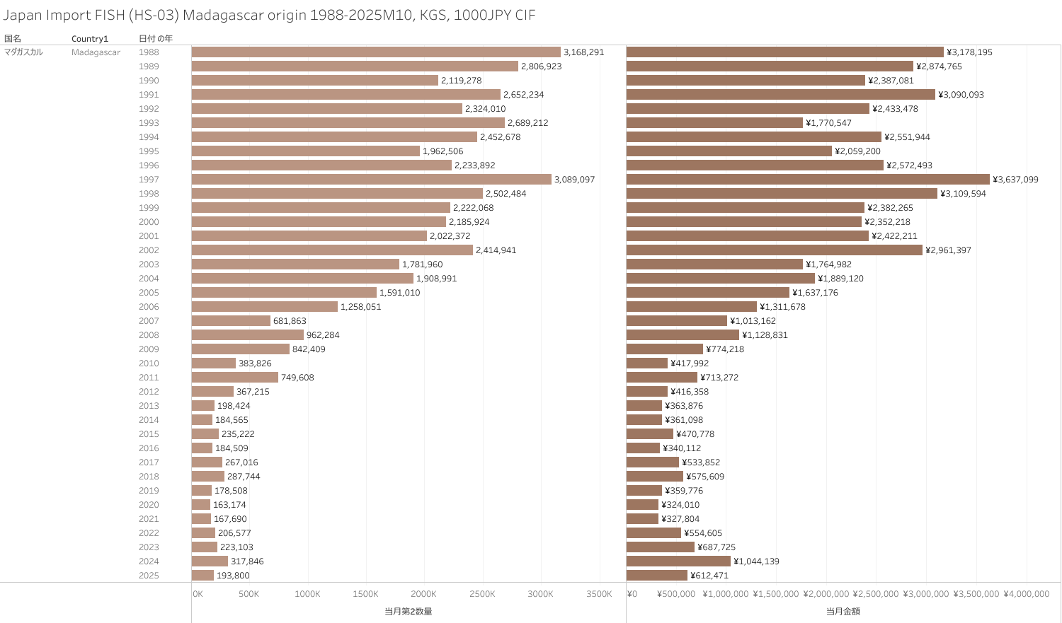 Japan Import FISH (HS-03) Madagascar origin 2025M10