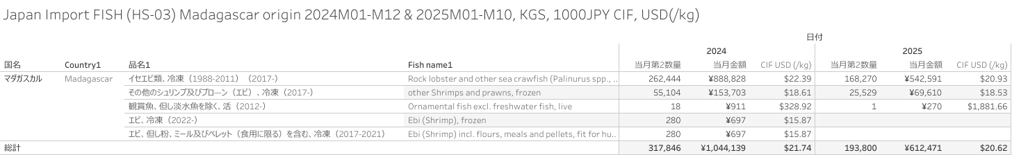 Japan Import FISH (HS-03) Madagascar origin 2025M10