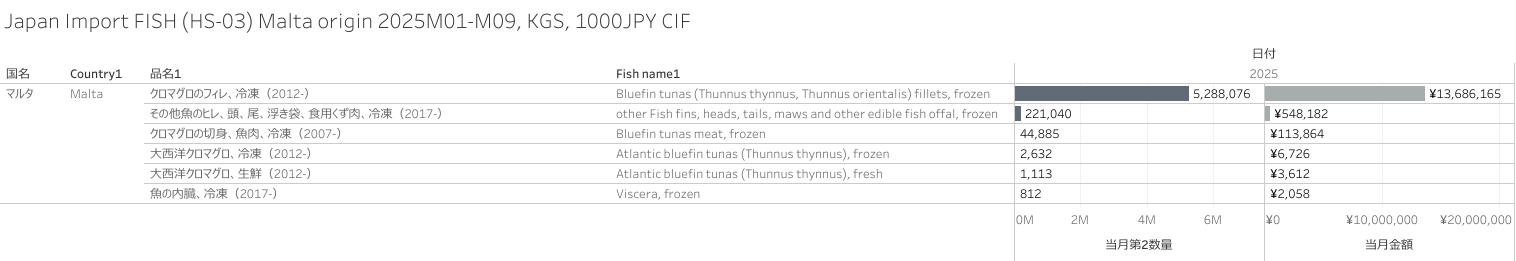 Japan Import FISH (HS-03) Malta origin 2025M09