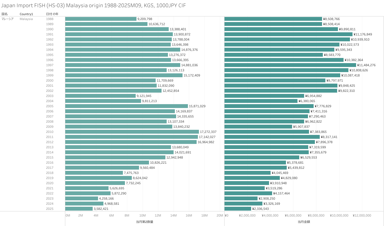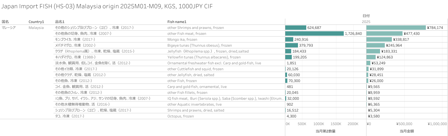 日本 マレーシア産水産物(HS-03)輸入統計 2025年09月まで