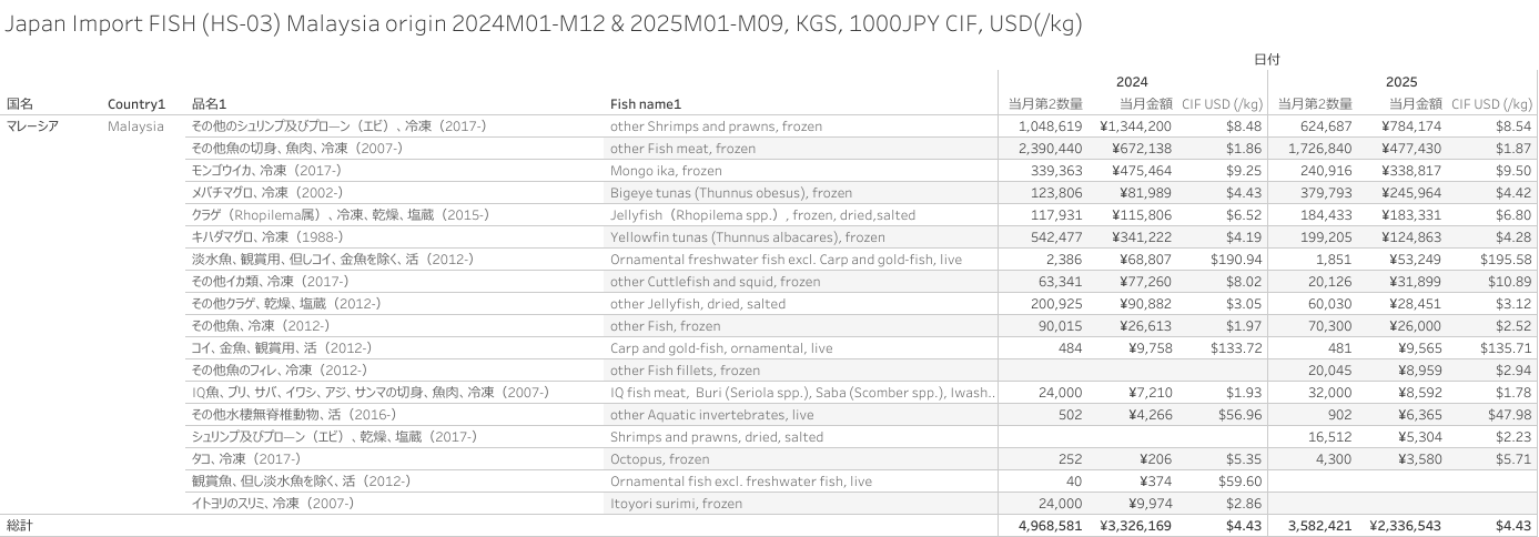 Japan Import FISH (HS-03) Malaysia origin 2025M09