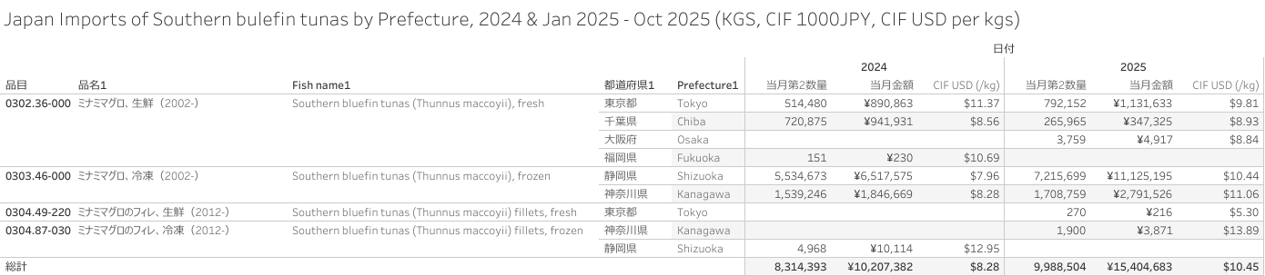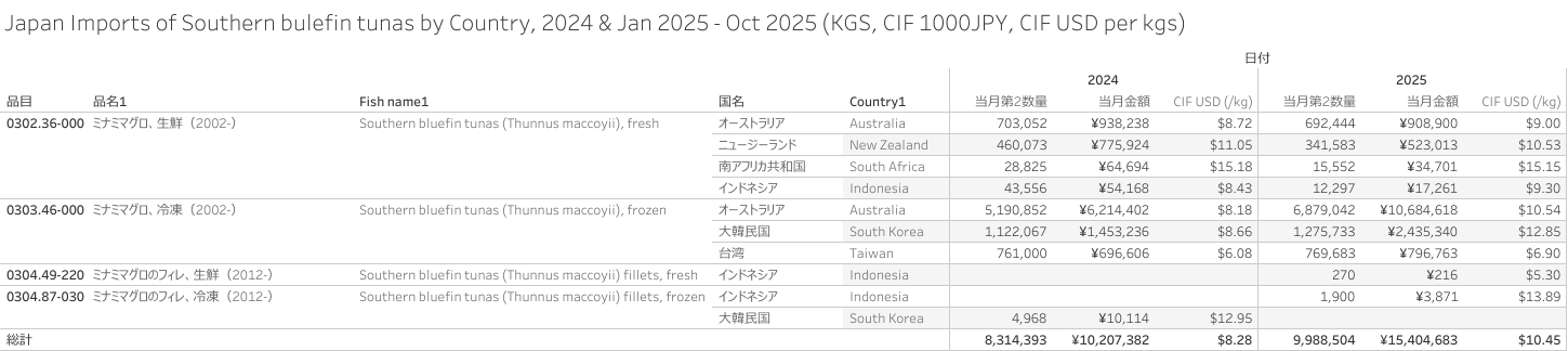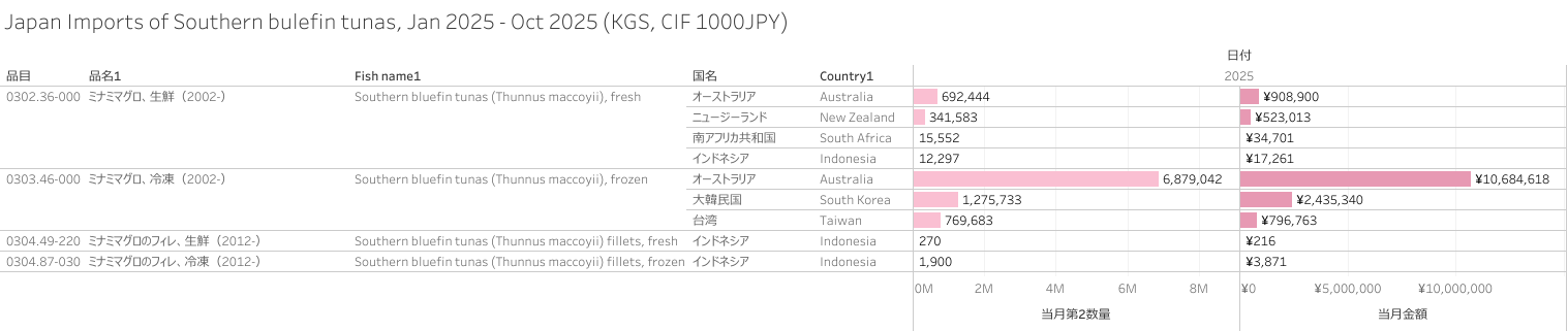 日本 ミナミマグロ(HS-03)輸入統計 2025年01月-10月