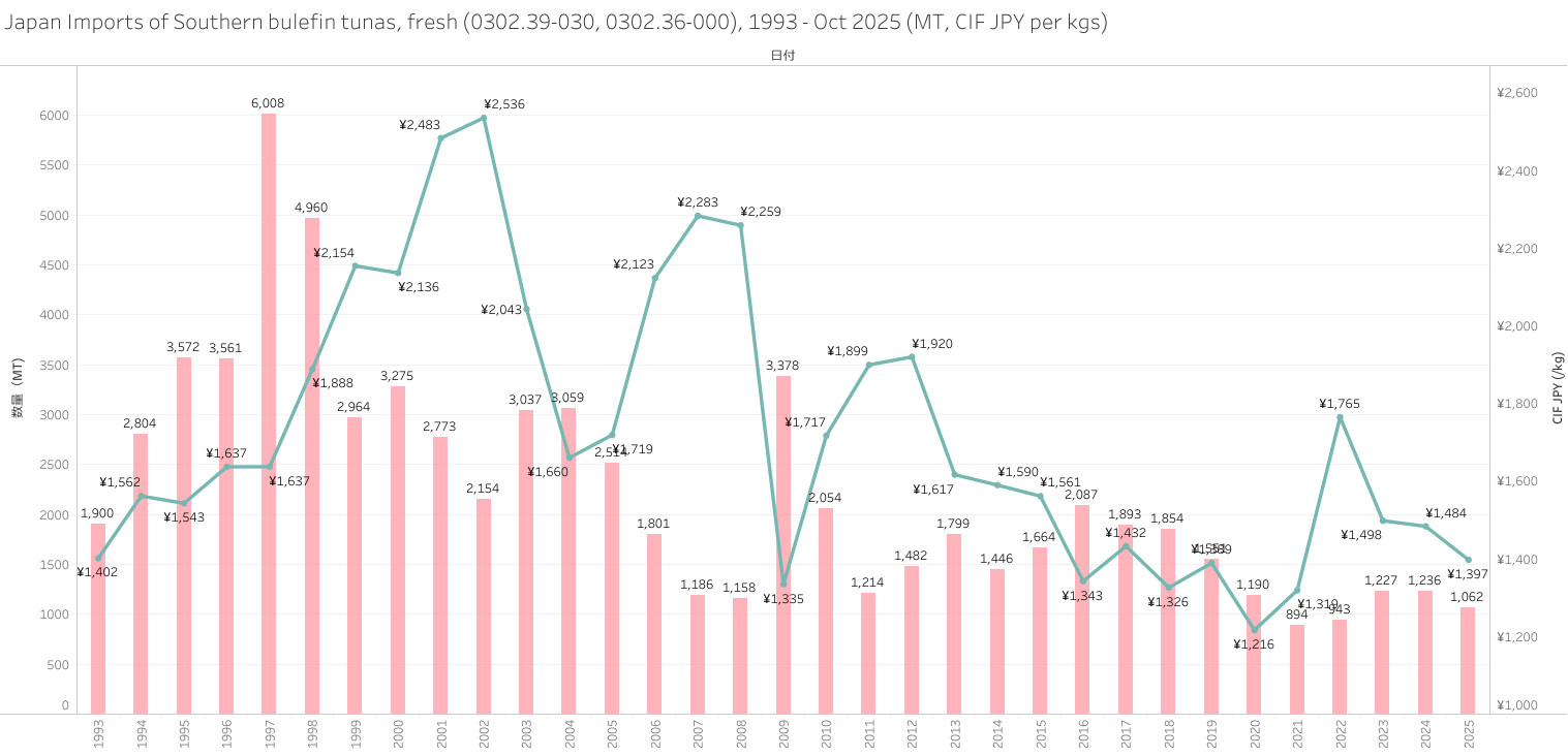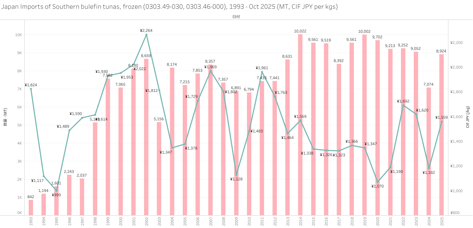 Japan Imports of Southern bulefin tunas (HS-03) Jan 2025 - Oct 2025