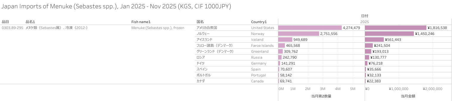 日本 メヌケ類(HS-03)輸入統計 2025年01月-11月