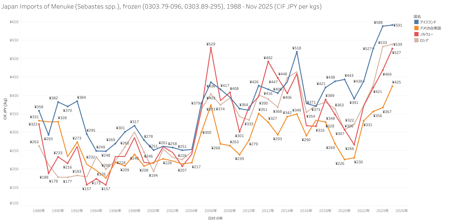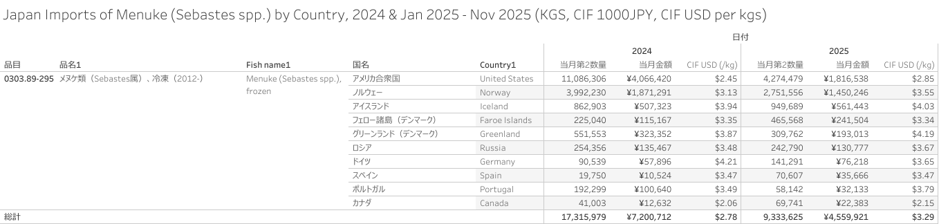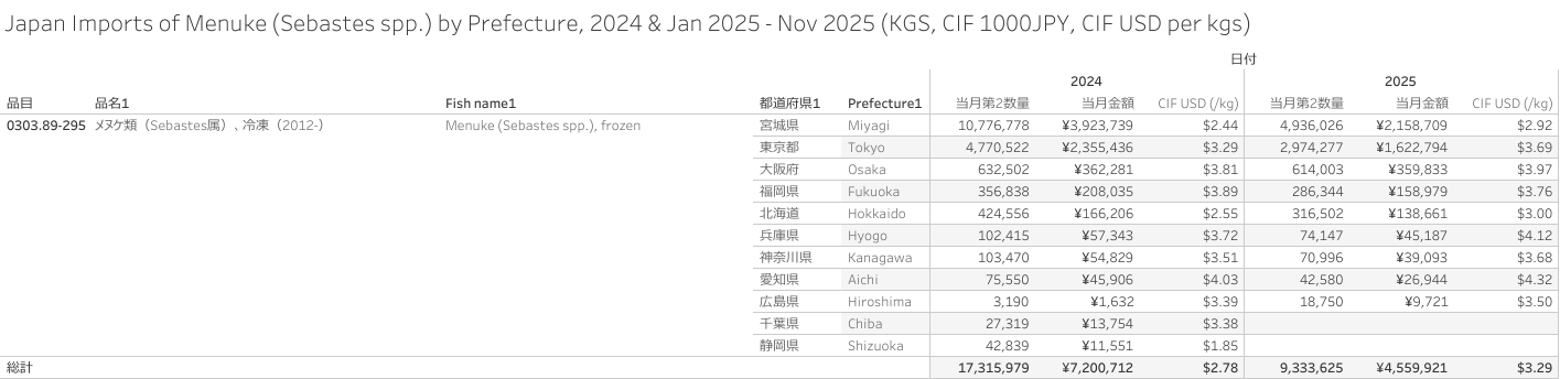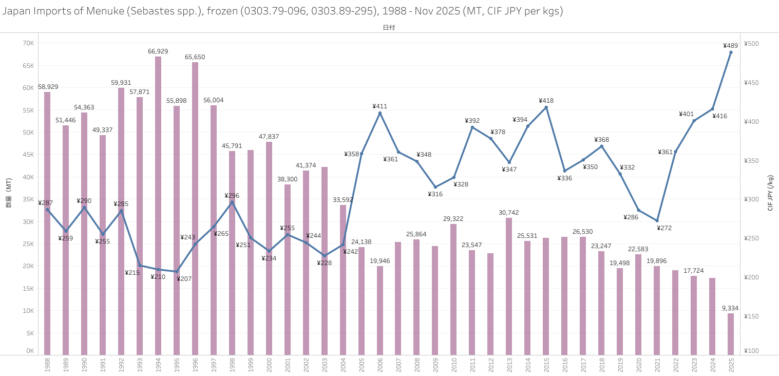 Japan Imports of Menuke (Sebastes spp.) (HS-03) Jan 2025 - Nov 2025