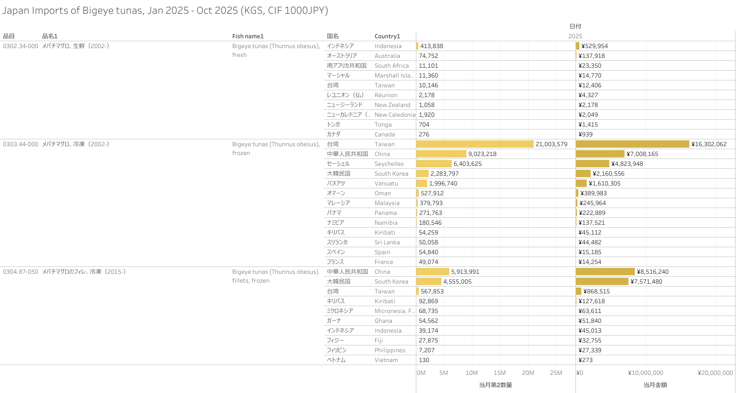 日本 メバチマグロ(HS-03)輸入統計 2025年01月-10月