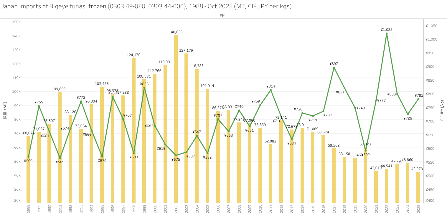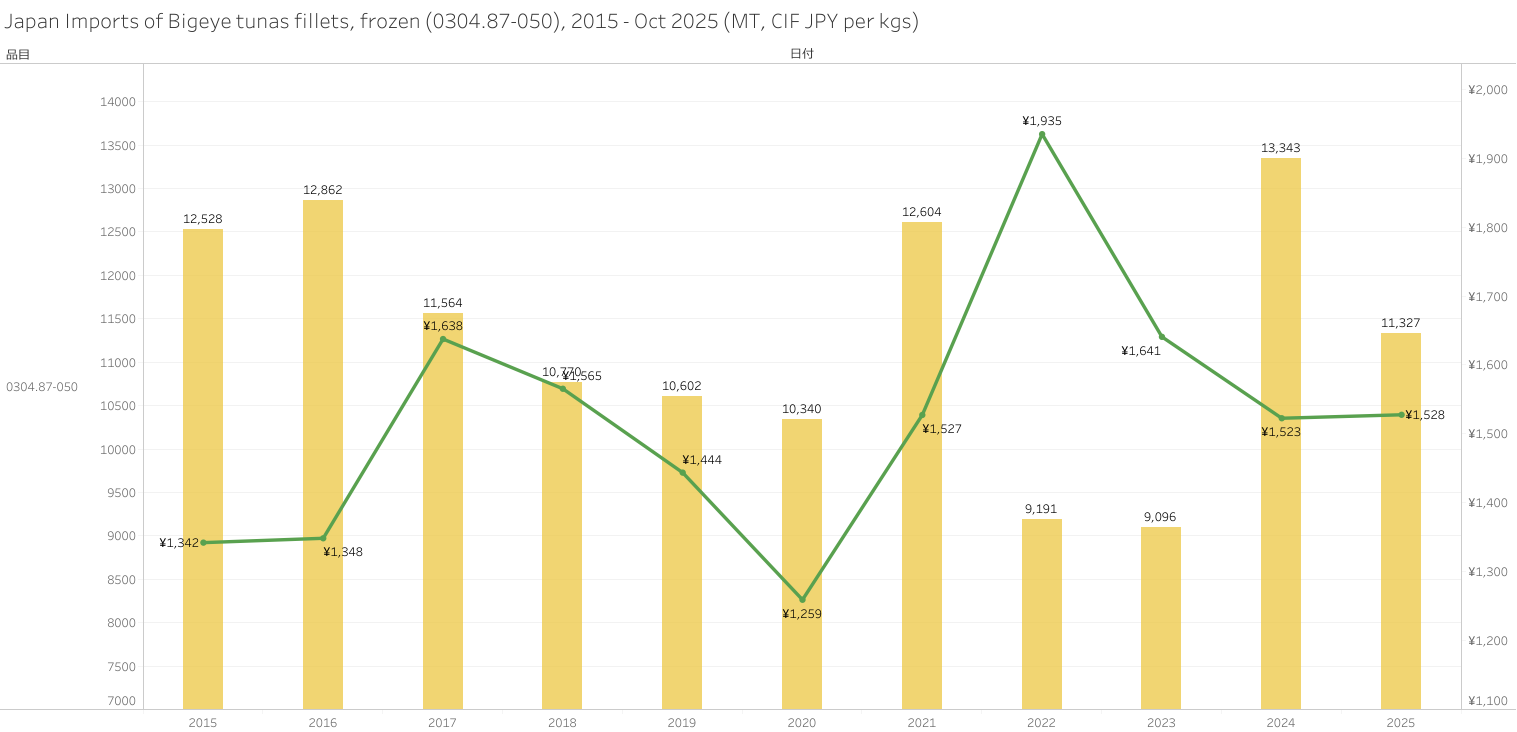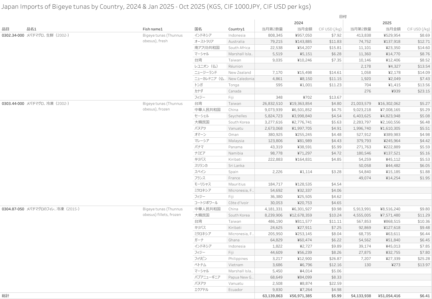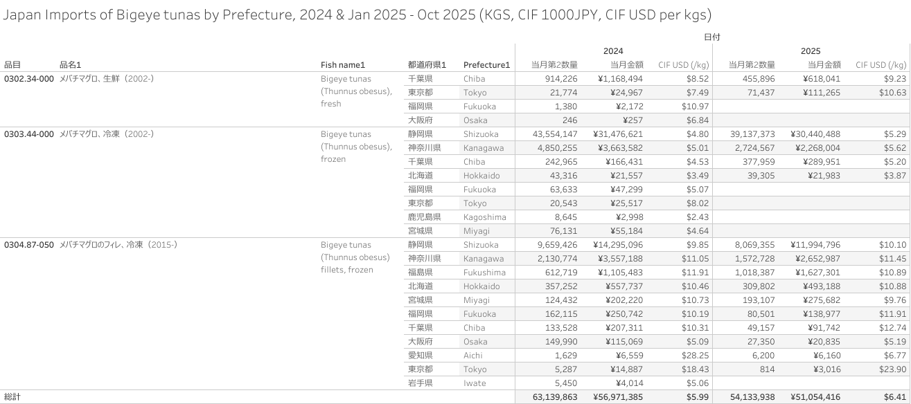 Japan Imports of Bigeye tunas (HS-03) Jan 2025 - Oct 2025
