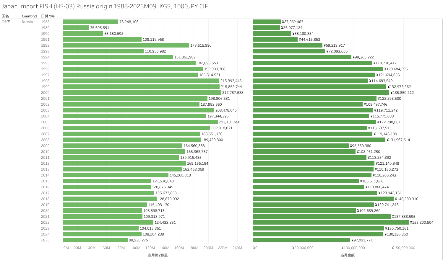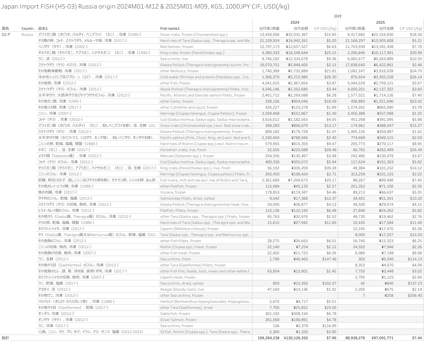 Japan Import FISH (HS-03) Russia origin 2025M09