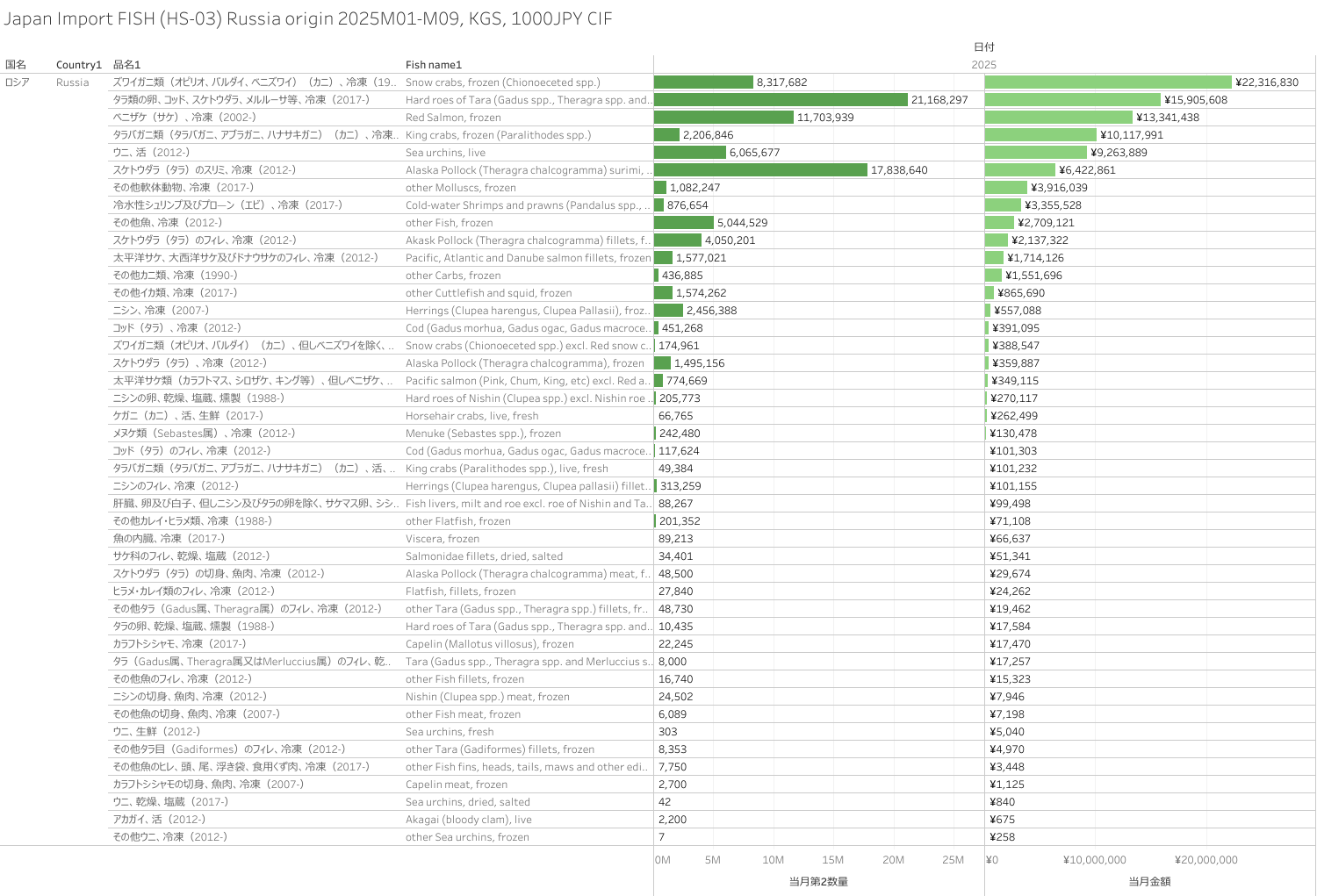 日本 ロシア産水産物(HS-03)輸入統計 2025年09月まで