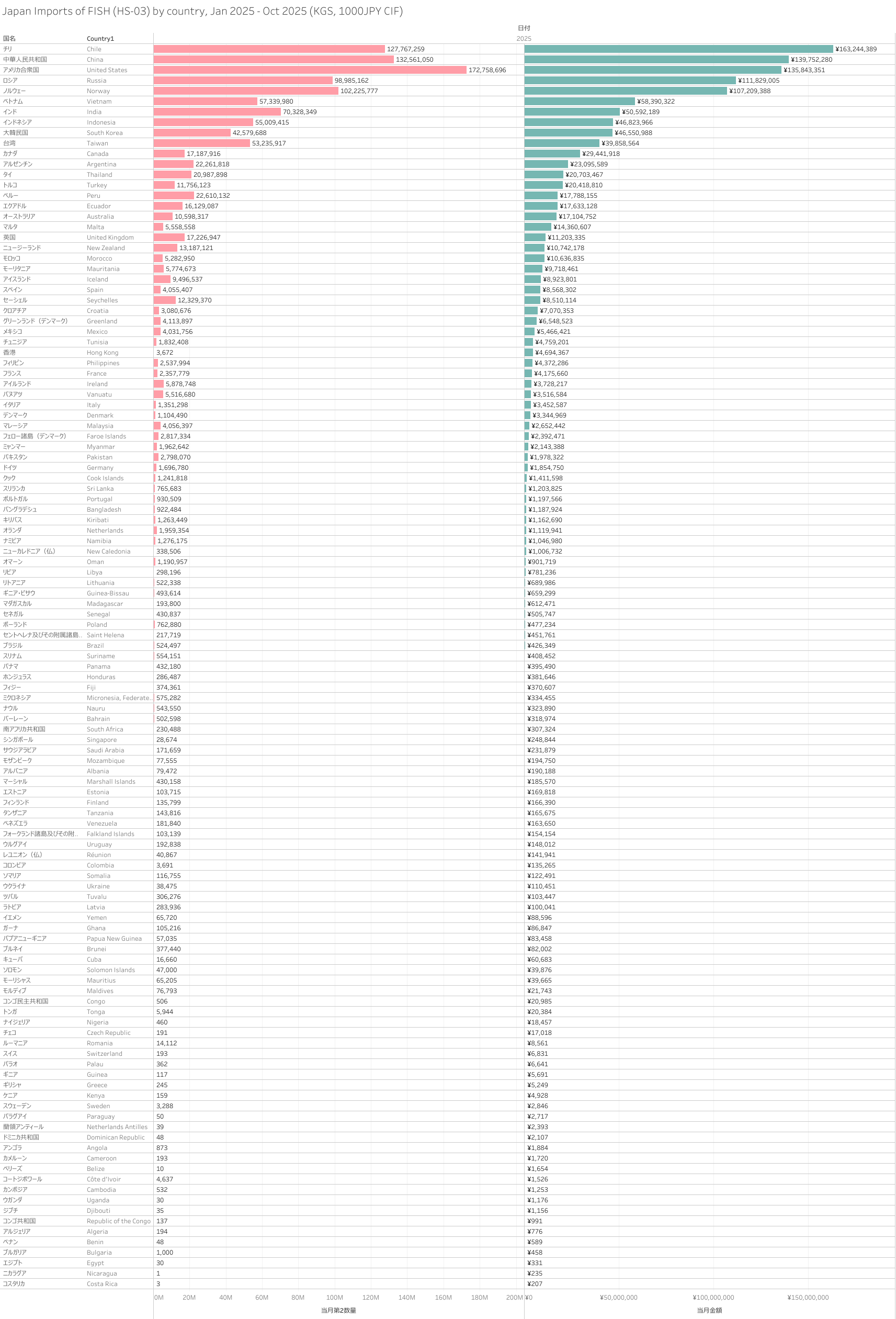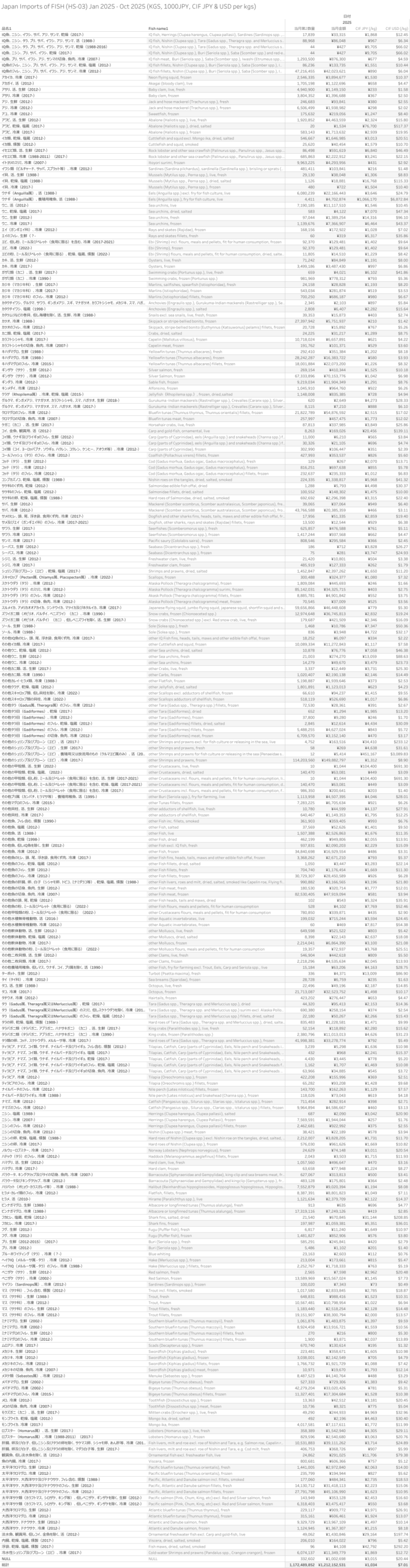 Japan Imports of FISH (HS-03) Jan 2025 - Oct 2025