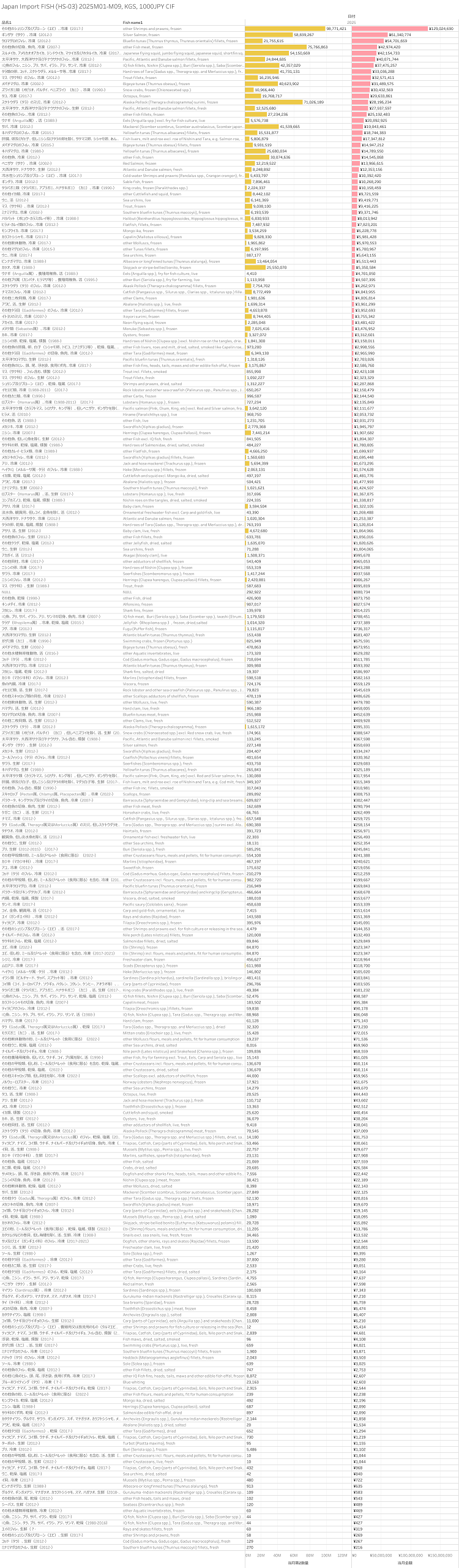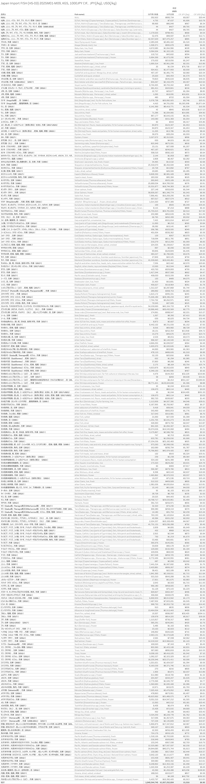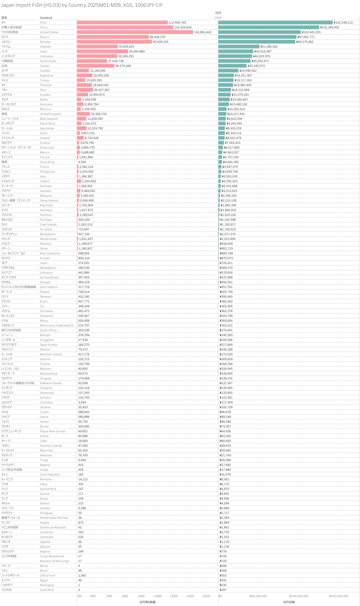 日本 水産物(HS-03)輸入統計 2025年09月まで