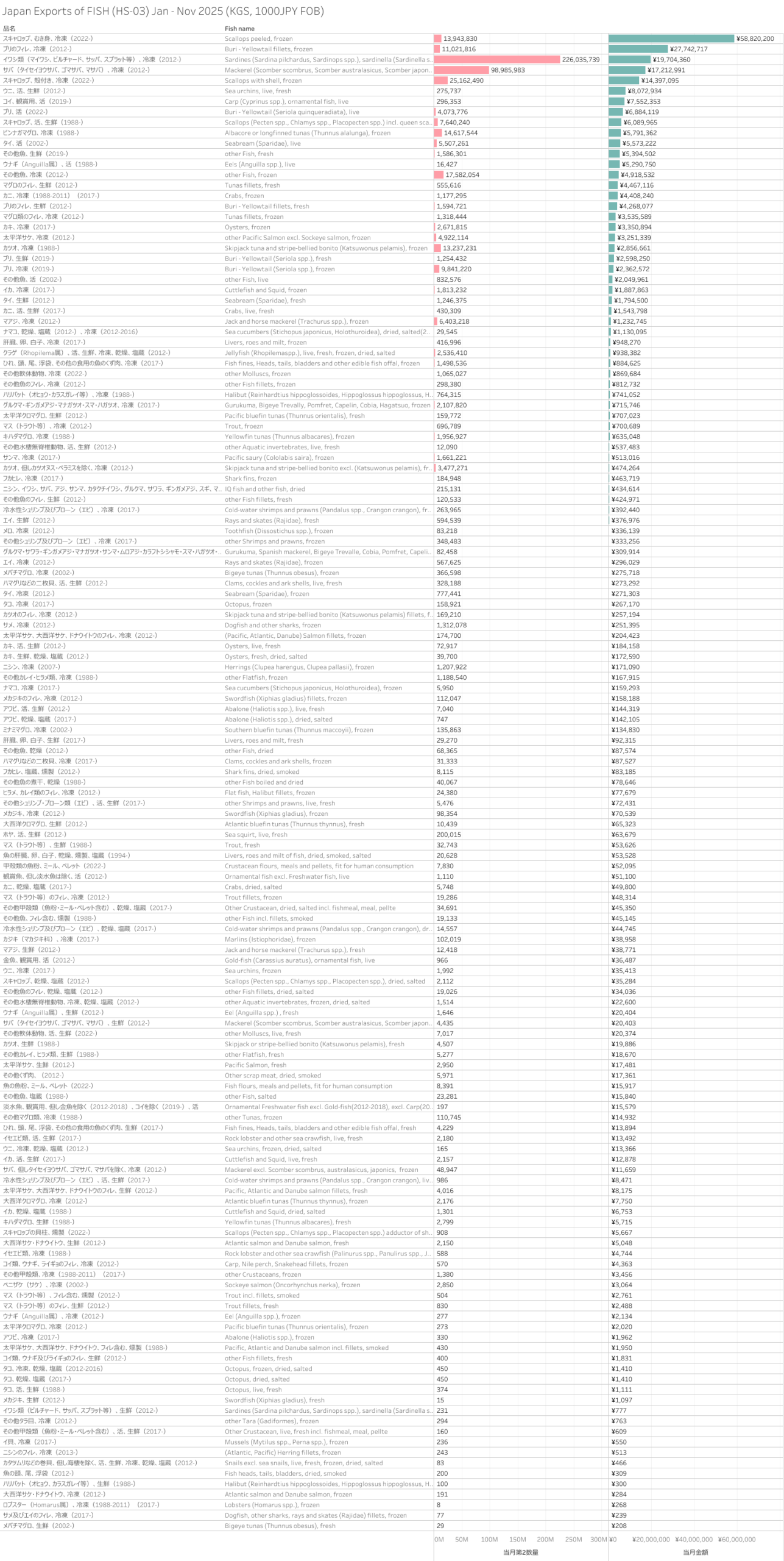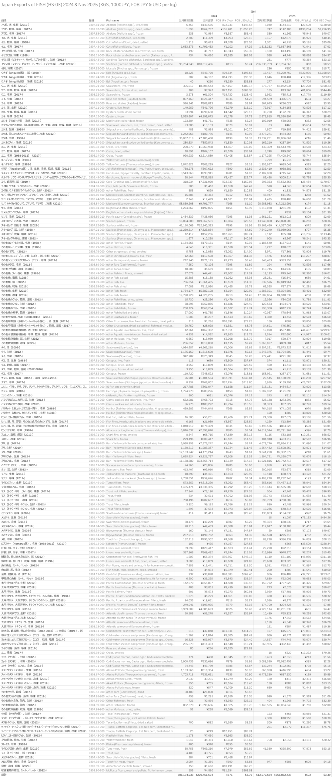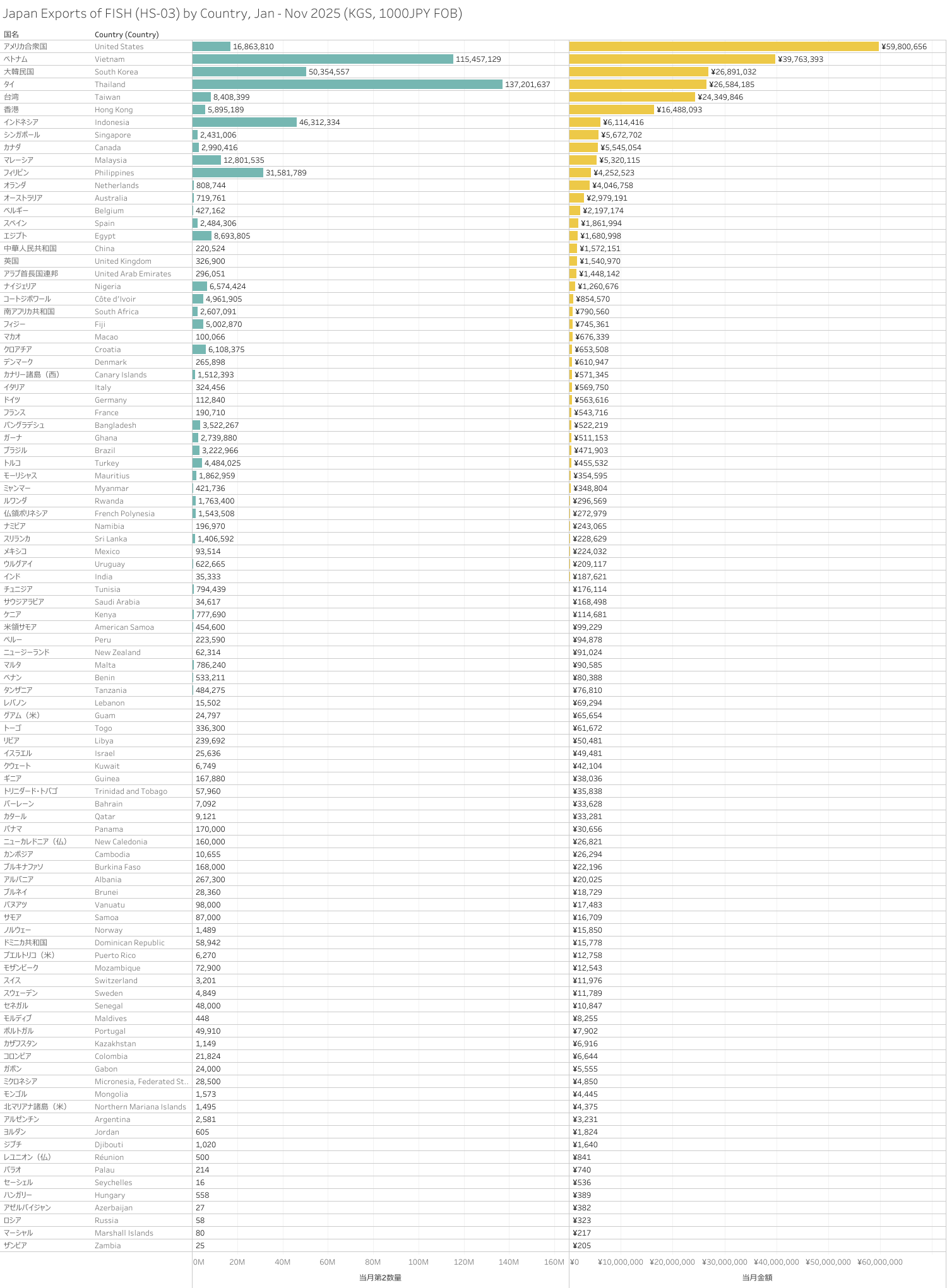 日本 水産物(HS-03)輸出統計 2025年01月-11月