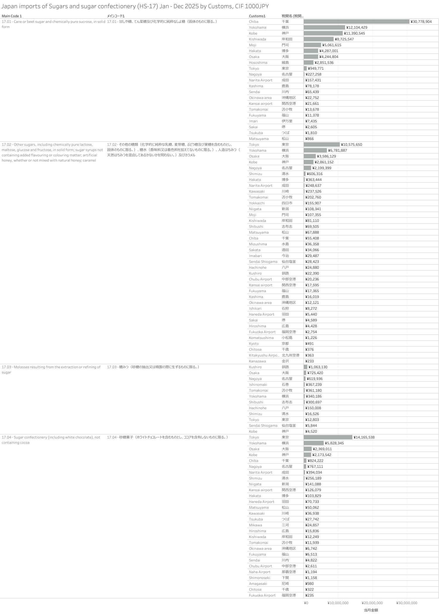 Japan Imports of Sugars and sugar confectionery. (HS-17) Jan-Dec 2025