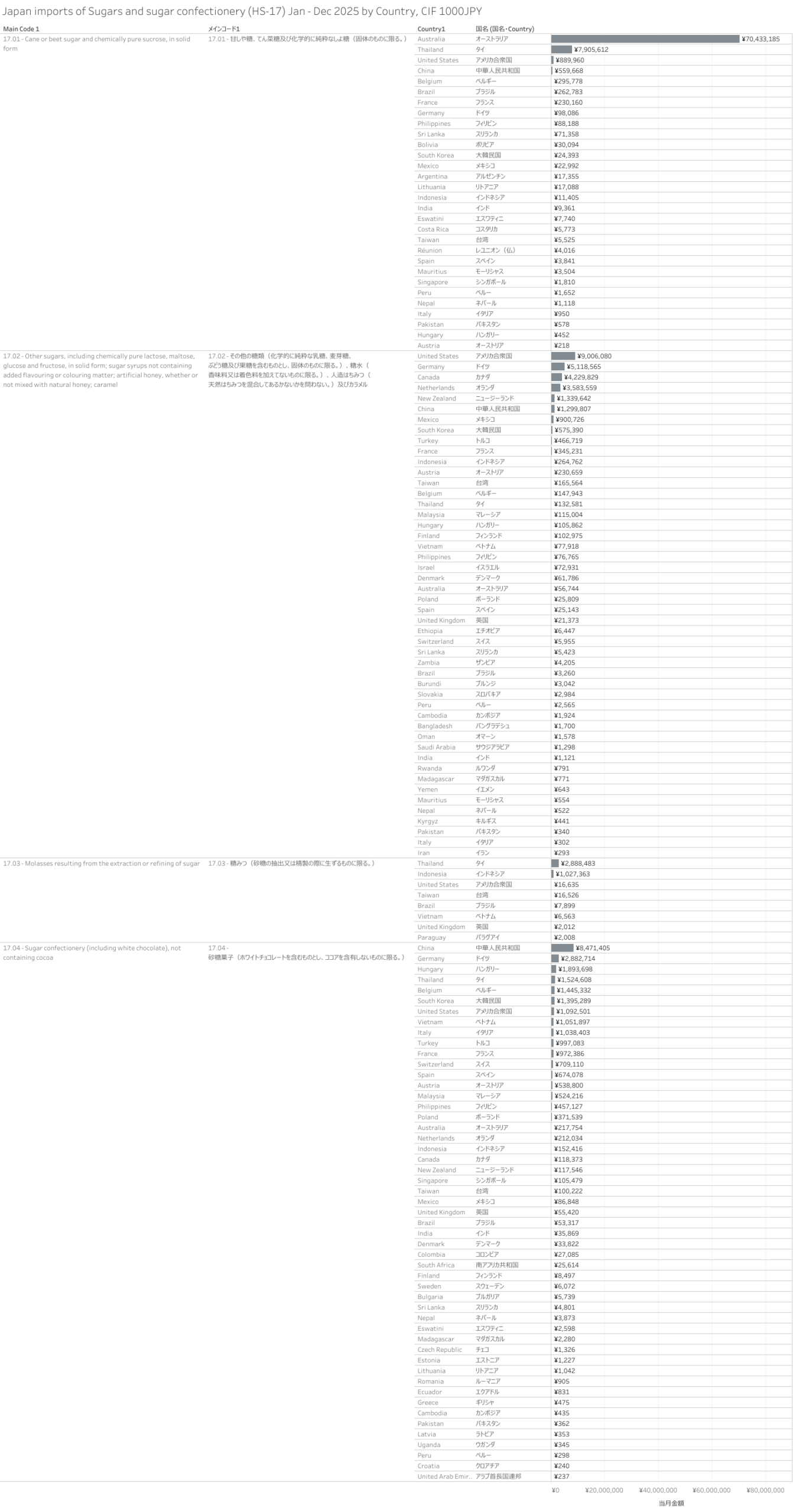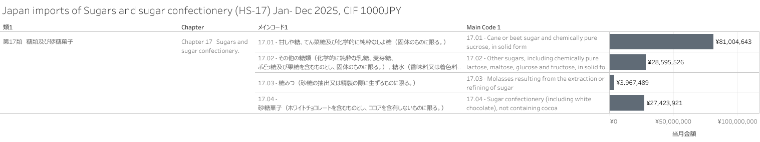 日本 糖類及び砂糖菓子(HS-17)輸入統計 2025年12月まで