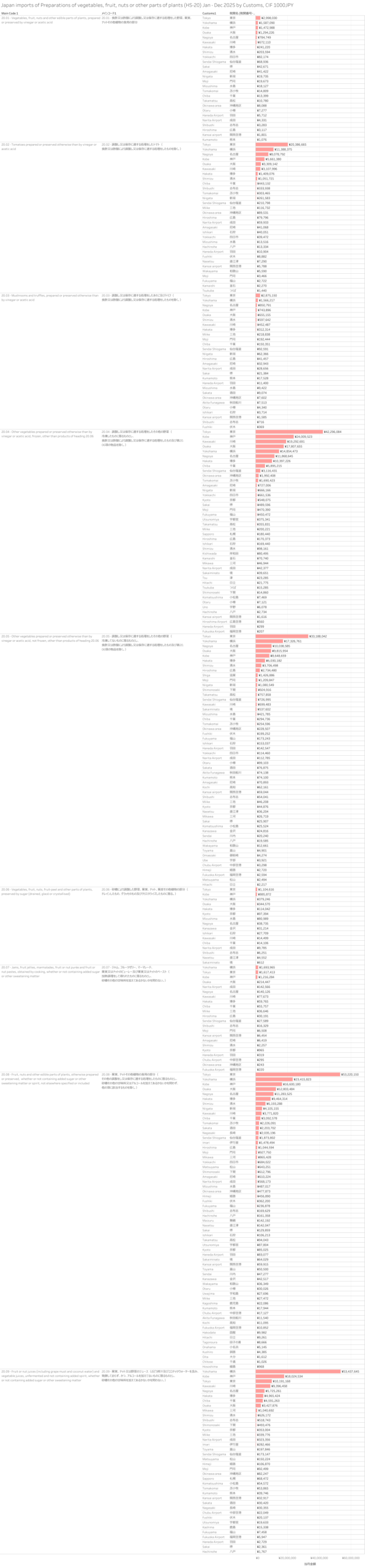 Japan Imports of Preparations of vegetables, fruit, nuts or other parts of plants. (HS-20) Jan-Dec 2025