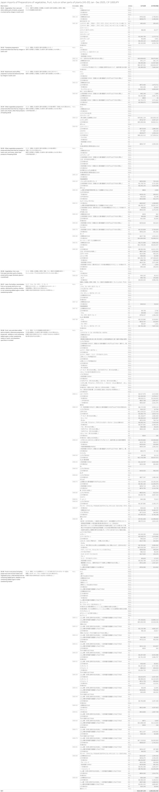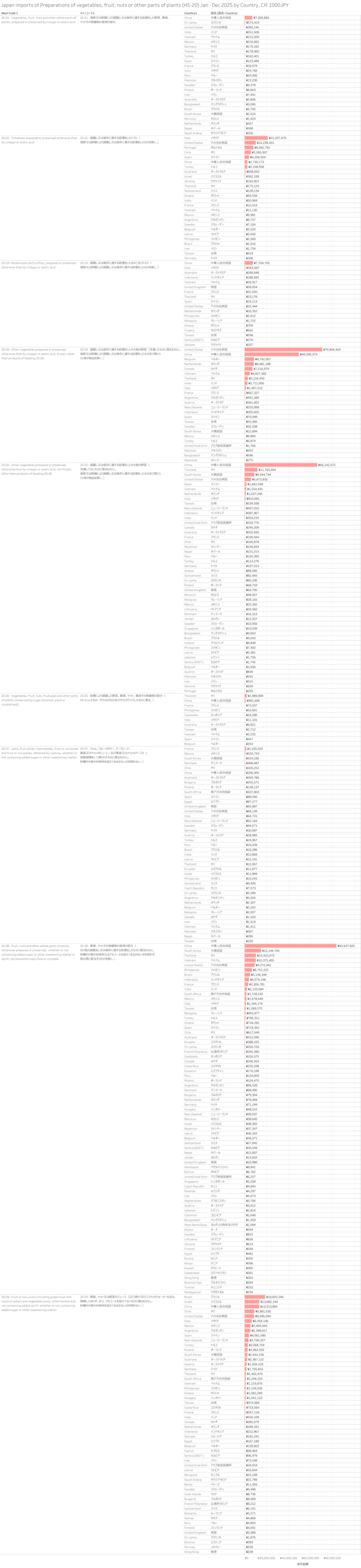 Japan Imports of Preparations of vegetables, fruit, nuts or other parts of plants. (HS-20) Jan-Dec 2025