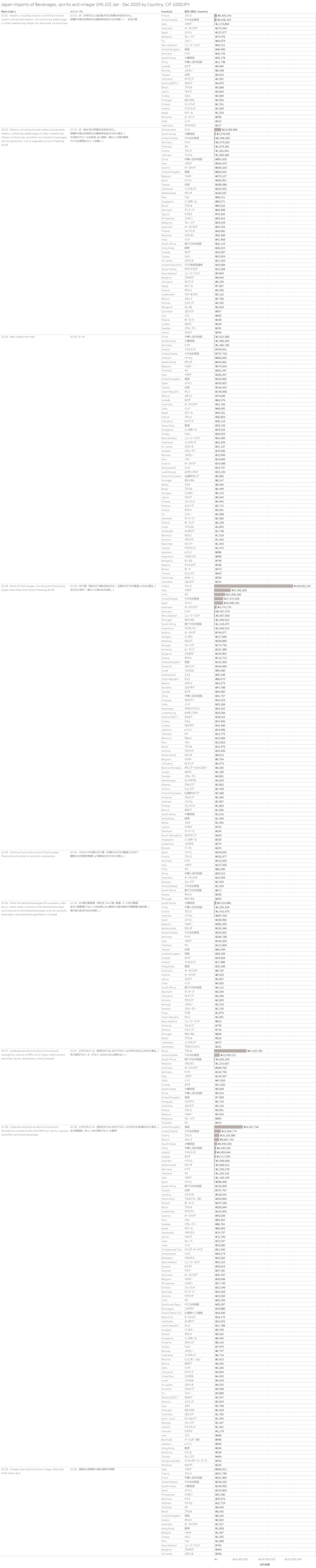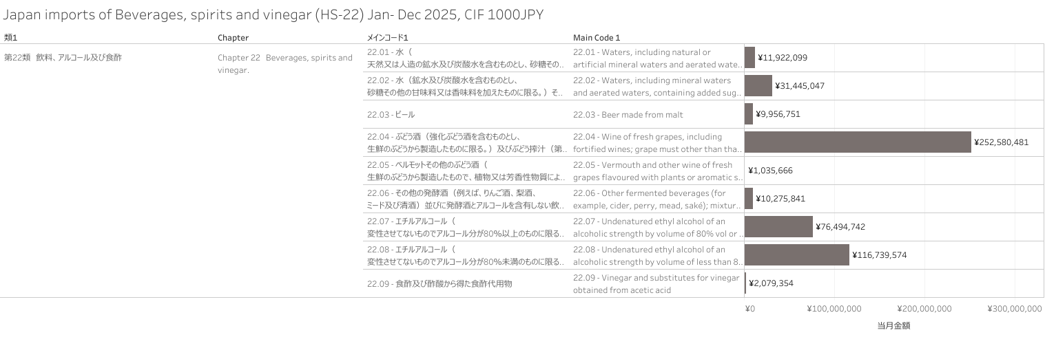 Japan Imports of Beverages, spirits and vinegar (HS-22) Jan-Dec 2025