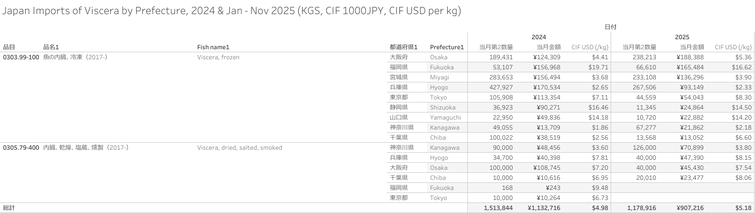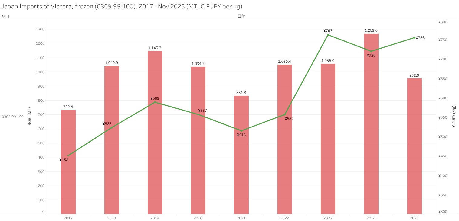 Japan Imports of Viscera (HS-03) Jan - Nov 2025