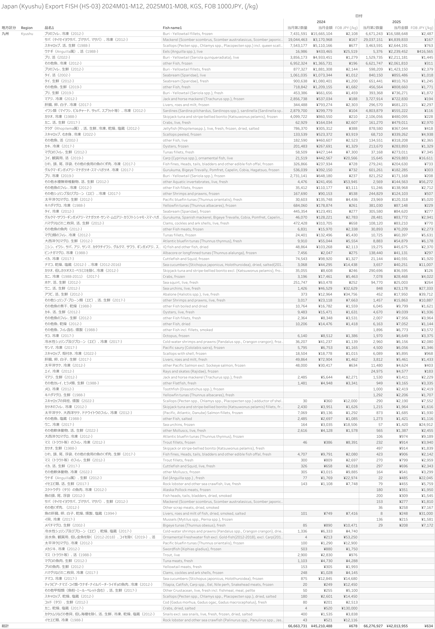 Japan (Kyushu) Export Fish (HS-03) 2025M08