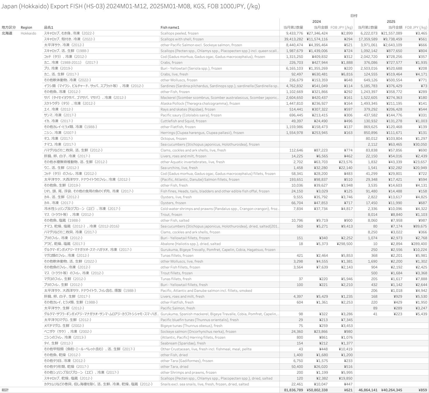 Japan (Hokkaido) Export Fish (HS-03) 2025M08