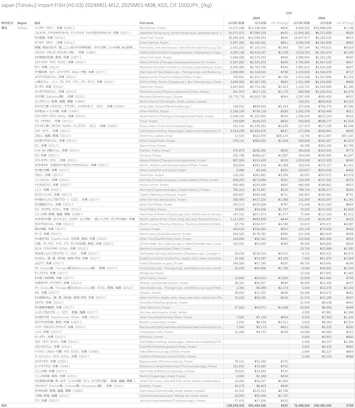 Japan (Tohoku) Import Fish (HS-03) 2025M08