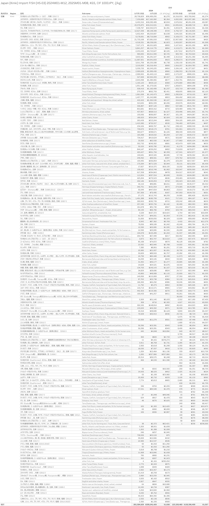 Japan (Kinki) Import Fish (HS-03) 2025M08