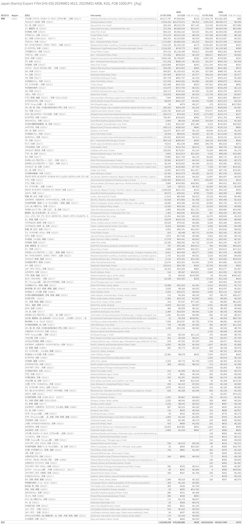 Japan (Kanto) Export Fish (HS-03) 2025M08